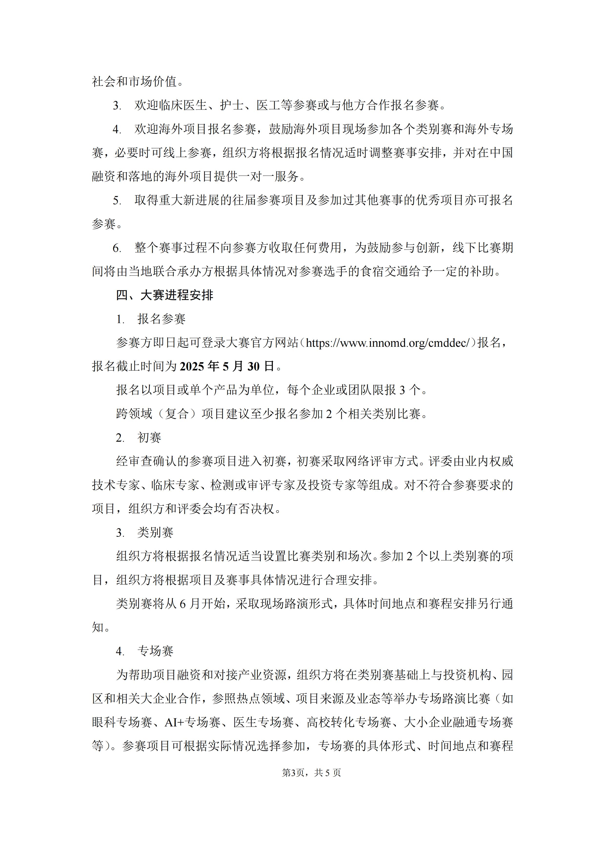 参赛方即日起可登录大赛官方网站(医疗器械创新网网://jssanniao.com/cmddec/)报名,报名截止时间为2025年5月30日。